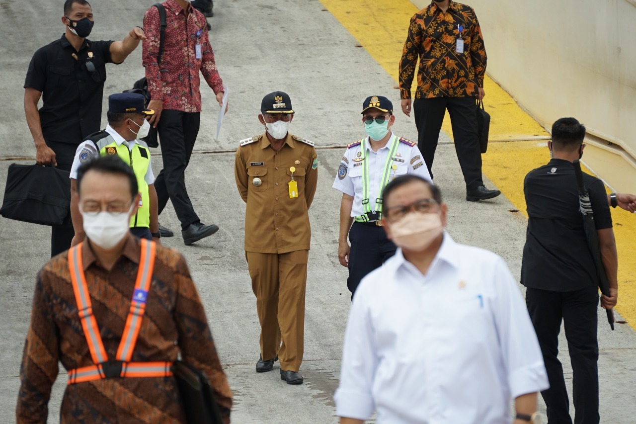 Bupati Subang H. Ruhimat menghadiri kunjungan kerja presiden Republik Indonesia Joko Widodo ke Pelabuhan Patimban Kabupaten Subang pada Selasa, (8/3).