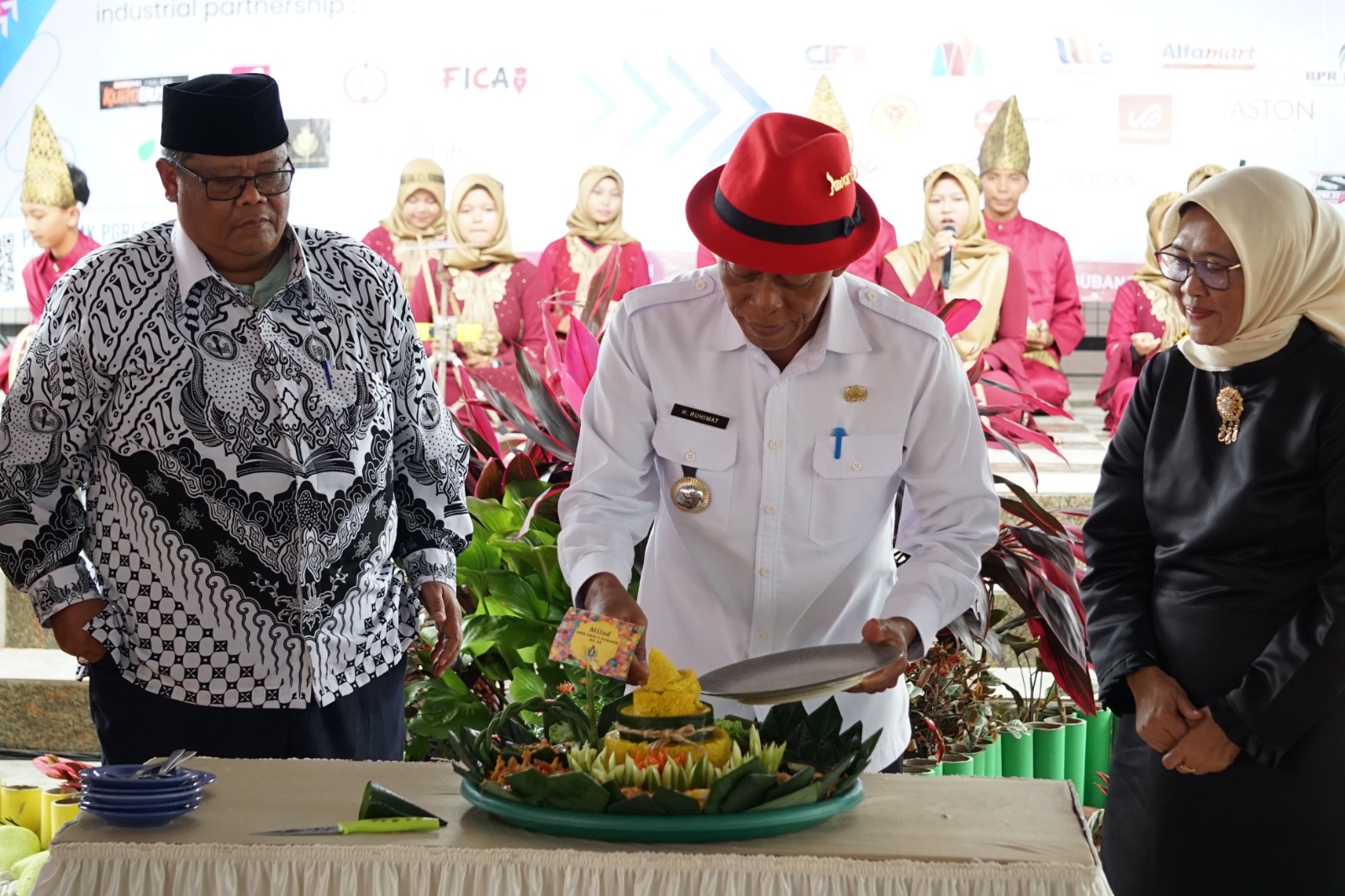 Acara dilanjutkan dengan simbolis pemotongan tumpeng oleh Bupati Subang didampingi tamu undangan yang hadir.