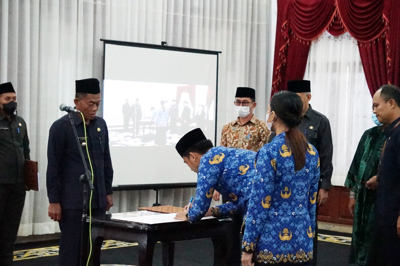 Bupati Subang H. Ruhimat melantik pejabat fungsional di lingkungan Pemerintah Daerah Kabupaten Subang di Pendopo Rumah Dinas Bupati, Jumat (2/12).